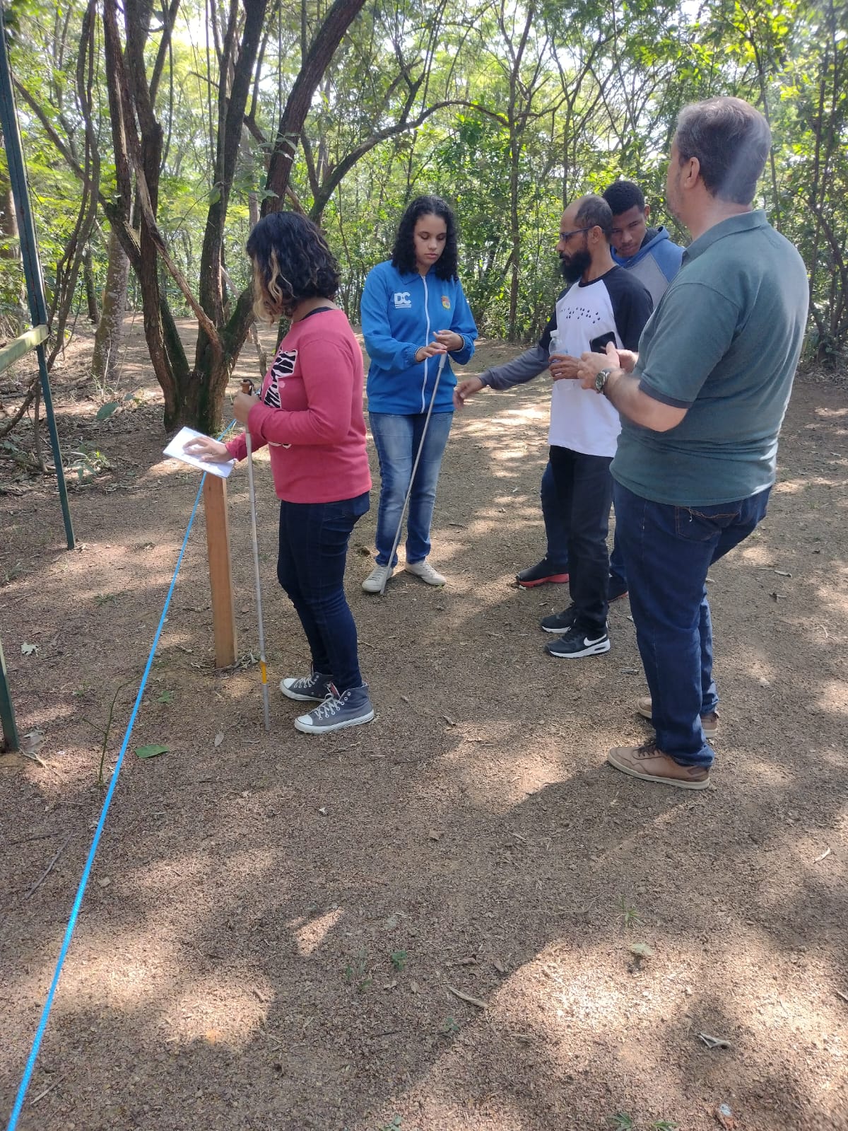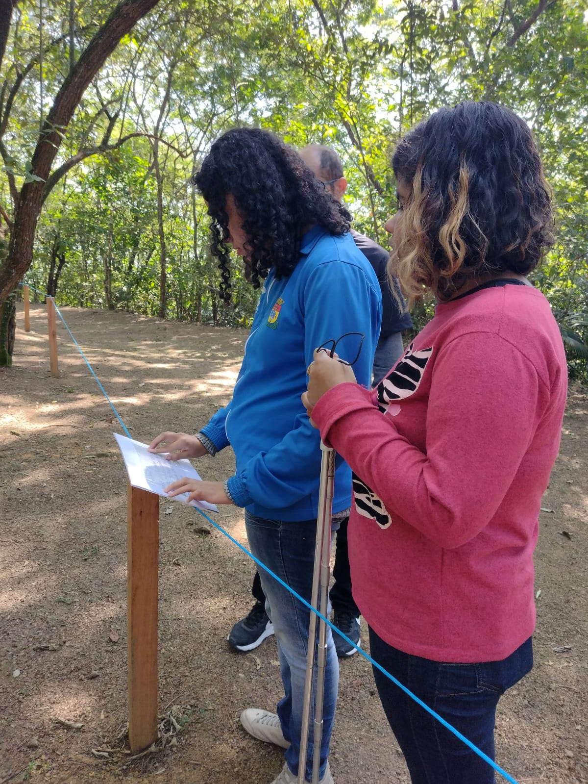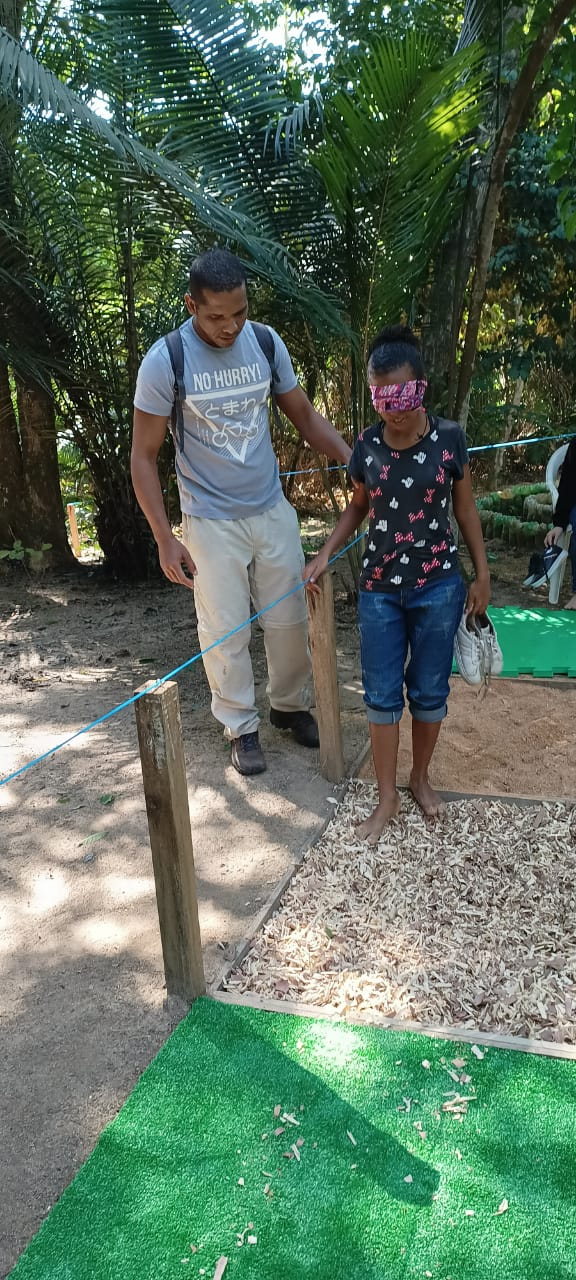 A instalação de uma corda guia fixa no percurso autoguiado de 350 metros proporciona ao visitante portador de deficiência visual autonomia e segurança para percorrer o trajeto, assim como as várias placas de linguagem em Braile complementam as informações sobre a biodiversidade do Parque para que a atividade lúdica seja plena. A trilha realizada apresenta caráter interpretativo, pois explora o ambiente natural através de todo o sistema sensorial fazendo com que os visitantes reflitam sobre as inter relações e dependências existentes na natureza. Em áreas naturais, a interpretação é uma estratégia educativa capaz de integrar o ser humano com a natureza, motivando-o a contribuir com a preservação desses ambientes.