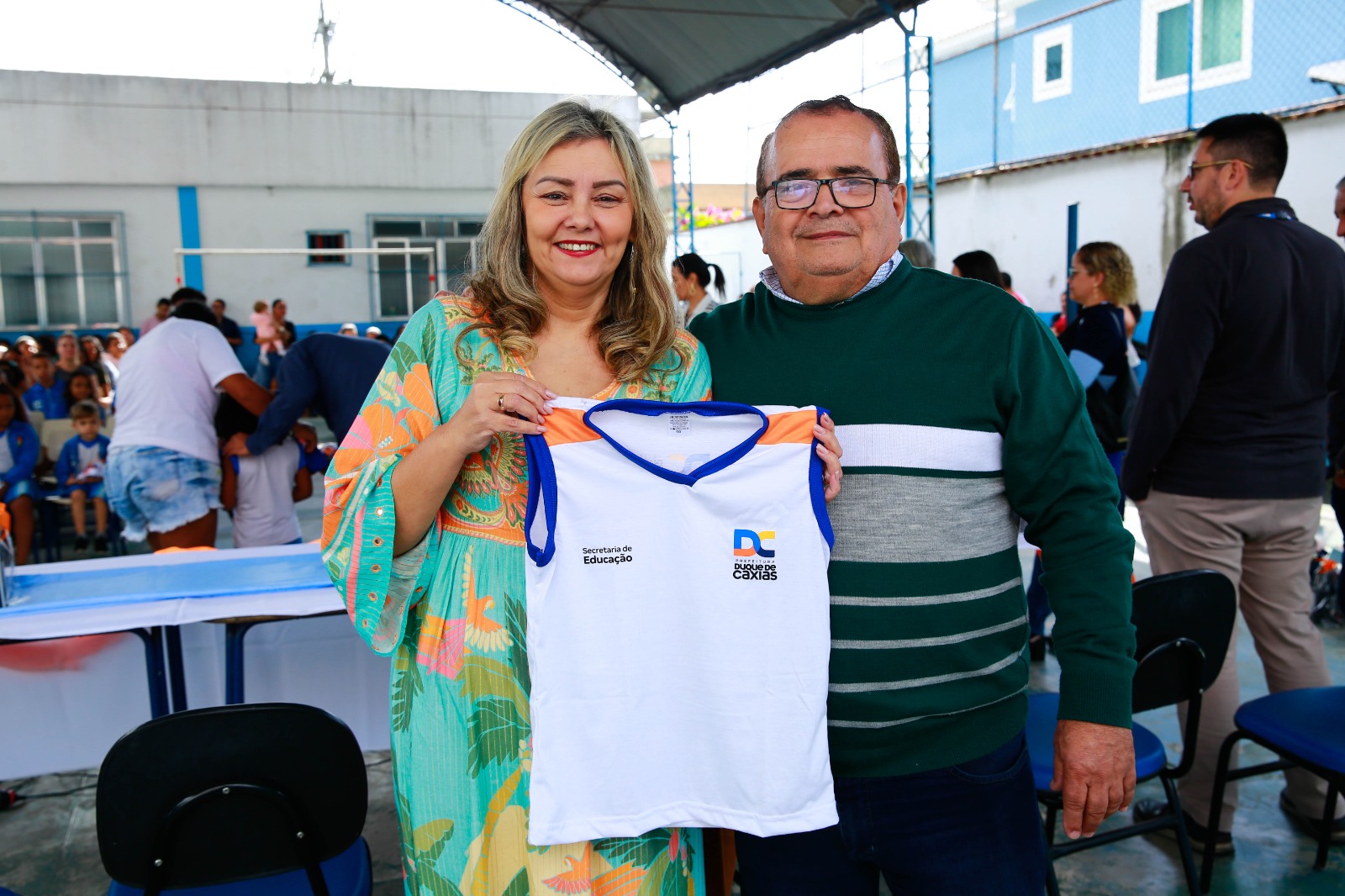 Os 75 mil alunos da Rede Municipal de Ensino de Duque de Caxias receberão as camisas do uniforme escolar. Para marcar esta data importante para a cidade, o Prefeito Wilson Reis entregou, pessoalmente, aos estudantes da Escola Municipal Imaculada Conceição, a peça do vestuário, nesta segunda-feira (03/07). Os pais e responsáveis também estiveram presentes durante o evento.