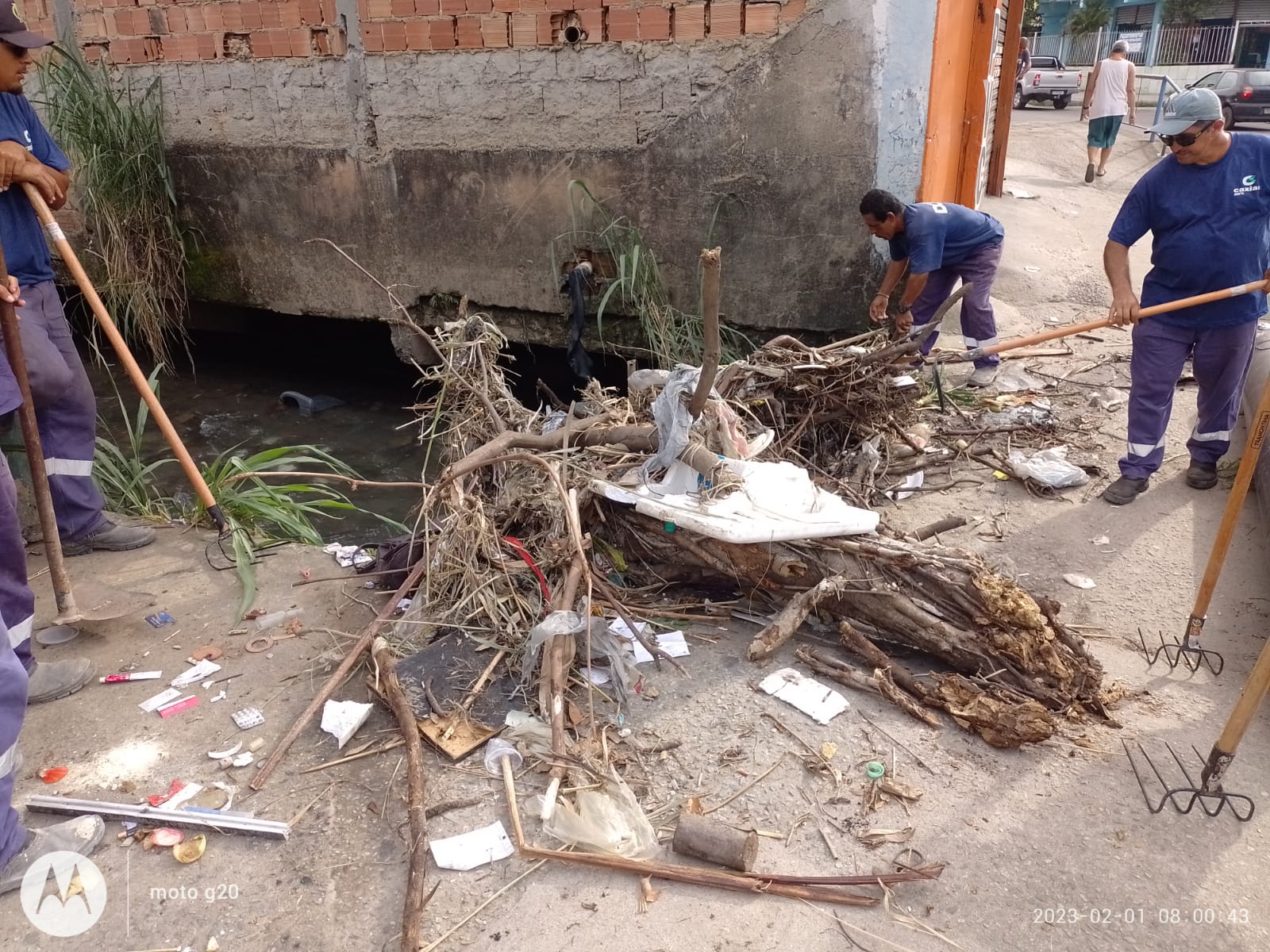 No trabalho realizado hoje, foram retirados diversos objetos volumosos, que impedem a vazão das águas. Tronco e galhos de árvores, partes de móveis, sofás, estruturas de metal e grande quantidade de sacos com lixo, além de inúmeras garrafas pet obstruíam o fluxo fluvial.