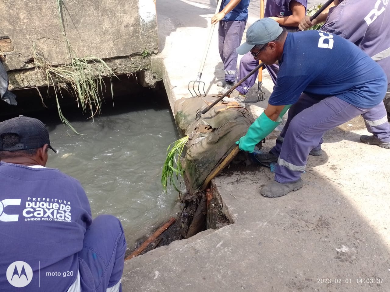 A Secretaria Municipal de Obras e Defesa Civil de Duque de Caxias, com equipes da Superintendência de Limpeza Urbana, trabalhou, nesta quarta-feira (01), na limpeza do canal que corta a Avenida Nilo Peçanha, no centro da cidade. Durante horas, homens e uma pá-carregadeira retiraram grande quantidade de lixo e entulho do córrego. O trecho da via costuma alagar nos dias de chuva forte, mesmo com as equipes da prefeitura limpando regularmente o local. O curso d’água se conecta ao Canal Caboclo que recebe a mesma atenção da prefeitura.