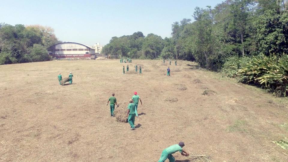 Sábado, 14/10, foi dia de mutirão de limpeza na área onde está instalado o Centro Esportivo de Xerém (antigo Grêmio da Fiat), na Vila Santa Alice, no quarto distrito.