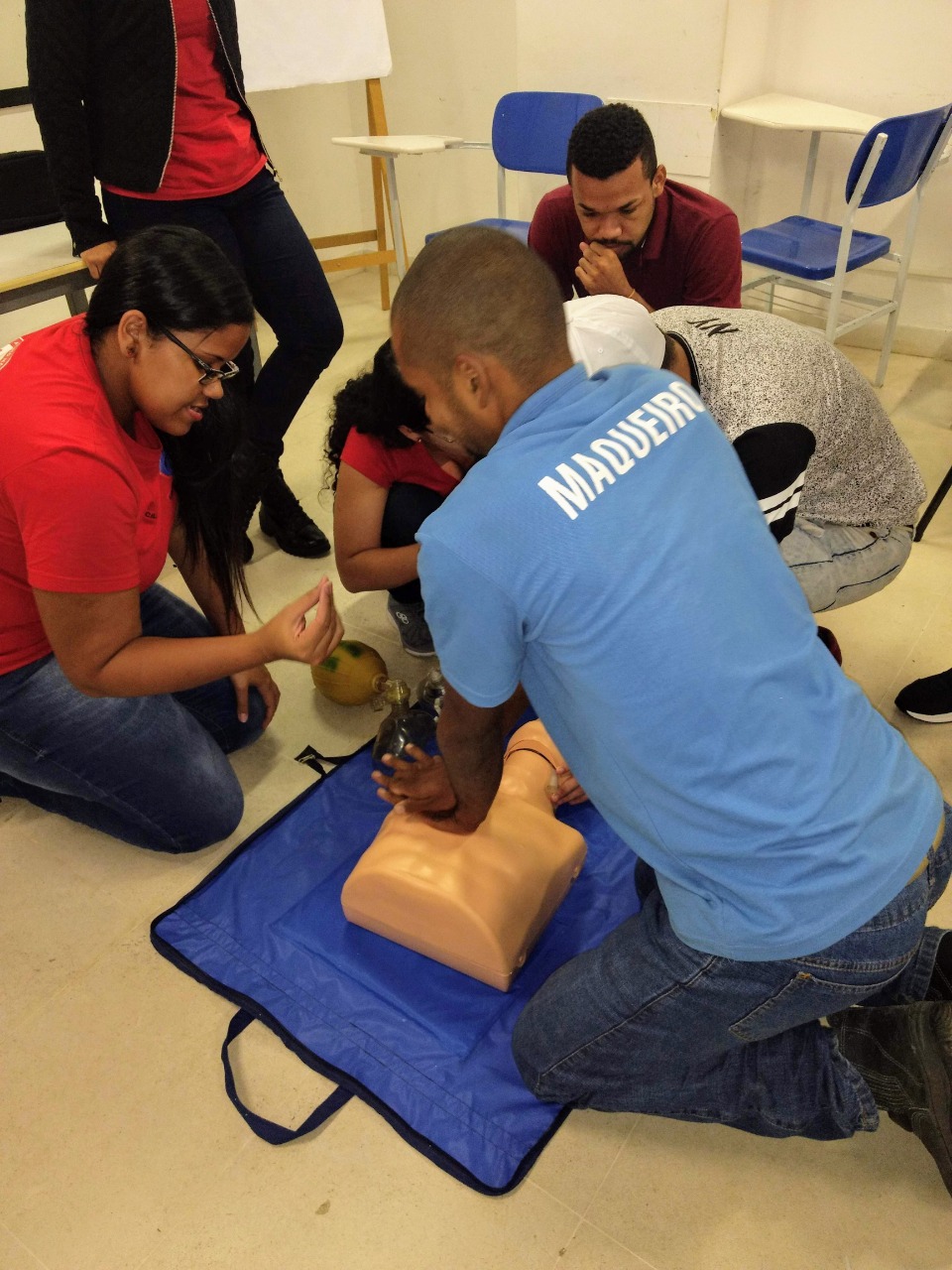 A atividade foi realizada em duas etapas, abordando os aspectos teóricos, com os seguintes tópicos: acolhimento, humanização, transporte de pacientes, biossegurança, primeiros socorros e suporte básico de vida; finalizando com uma demonstração prática, utilizando manequins para simulação de situações reais.