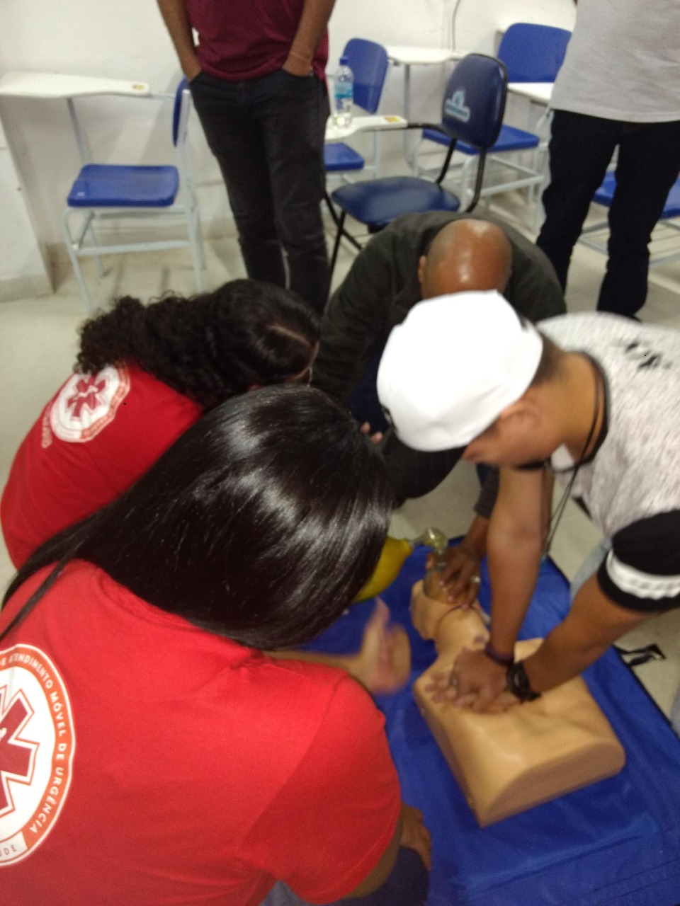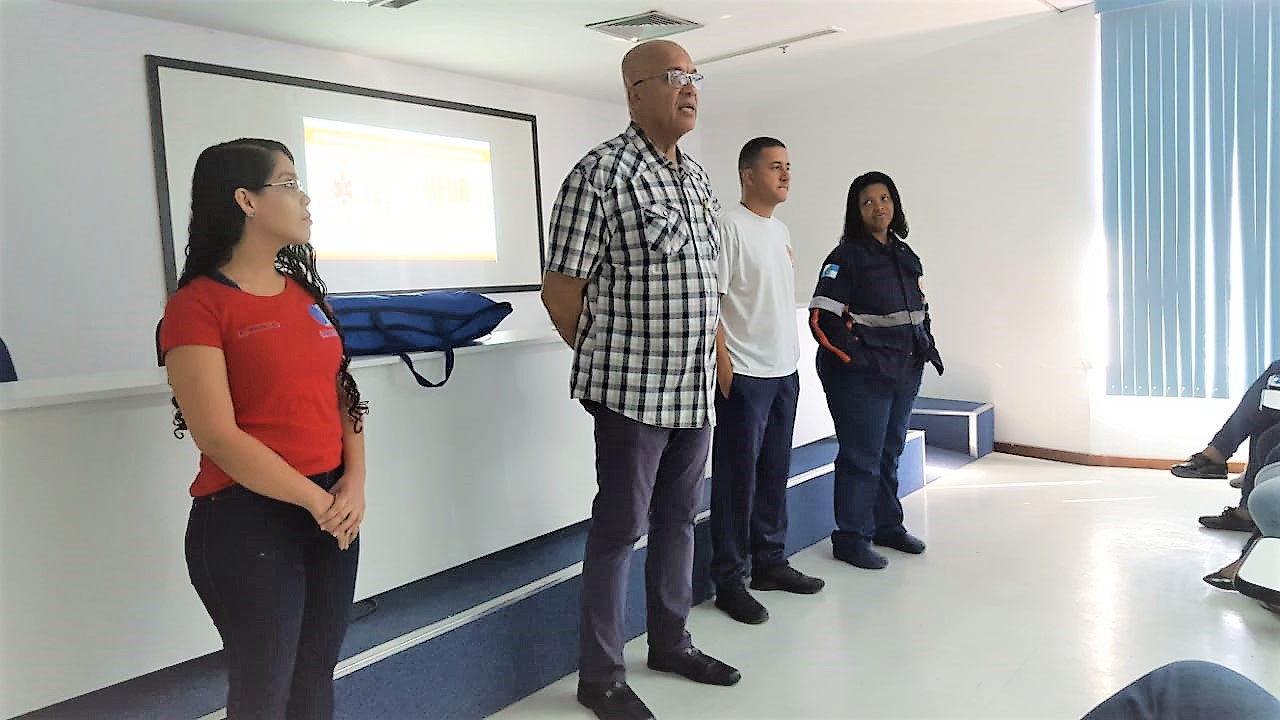 O treinamento dos funcionários atendeu ao convite feito pela Diretora de Enfermagem, Enfª Elisângela Luiza, e contou com a presença da Coordenadora do NEUR/SAMU192 DC, Enfª Claudia Fidelis Basilio; do instrutor Adriano Valença (Técnico de Enfermagem); e das acadêmicas de Enfermagem da Unigranrio, Bruna Nobre, Juliana Gomes e Priscila Sumas.