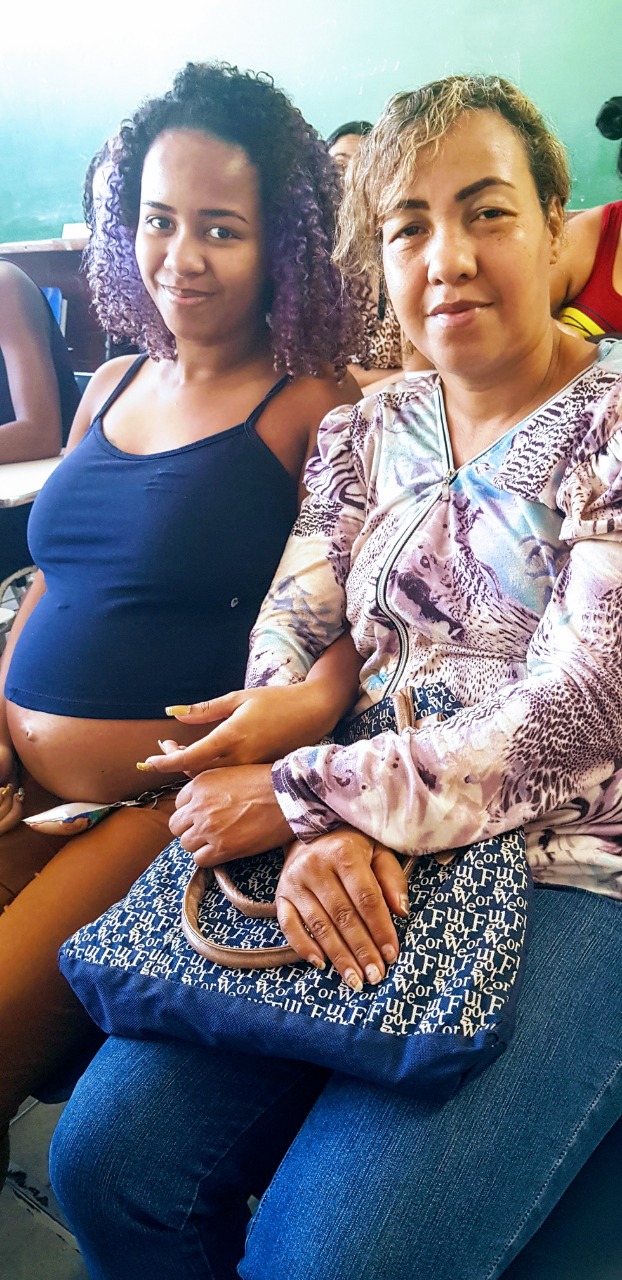 A adolescente Valquíria, de 18 anos participou do encontro, acompanhada da sua mãe, Valéria Regina. Moradora do Barreiro, em Xerém, Valquíria tem deficiência na fala e está grávida de 7 meses, de uma menina que vai se chamar Laura. Sua mãe diz que as duas estão satisfeitas com o acompanhamento recebido no CRAESM, através do Programa de Saúde da Adolescente. “Estamos sendo muito bem acolhidas na unidade. Minha filha vem recebendo acompanhamento médico e do serviço social, além de outras orientações que têm ajudado muito a Valéria enfrentar as dificuldades da gravidez não programada”, diz a mãe Valéria.