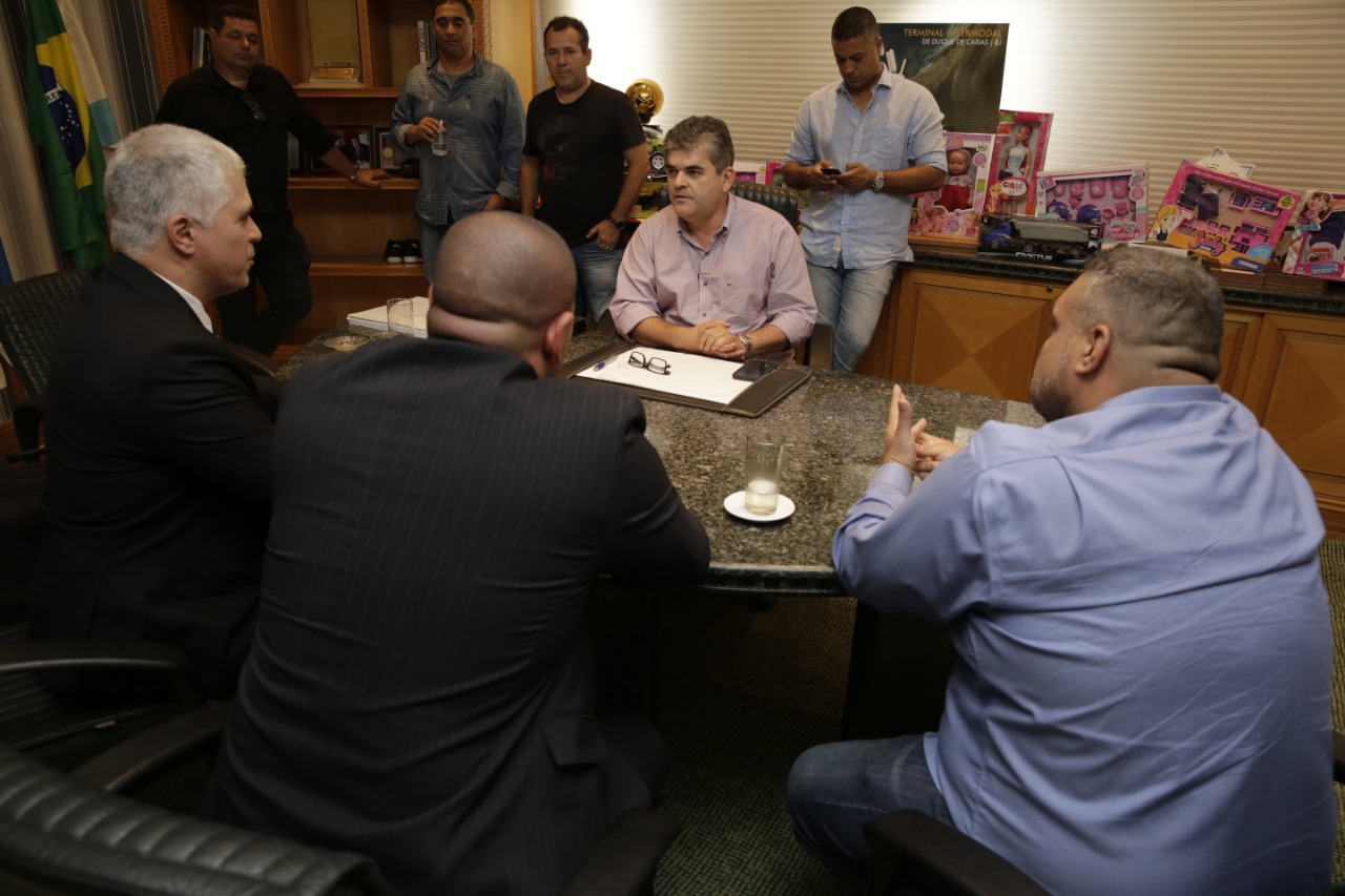 O prefeito Washington Reis reuniu-se com representantes do Governo do Estado do Rio de Janeiro, nesta segunda-feira (02/09), para falar sobre a implantação do programa Segurança Presente no município de Duque de Caxias. Na ocasião, André Chelfo, subsecretário de Gestão Administrativa, e Rodrigo Prujansky, assessor-chefe da Secretaria de Governo, falaram sobre os principais pontos que envolvem a iniciativa e discutiram como o projeto será desenvolvido na cidade. A expectativa é de que o Caxias Presente tenha início em novembro. Estiveram presentes na reunião os vereadores Junior Reis, Marcos Tavares, Celso do Alba e Claudio Thomaz.