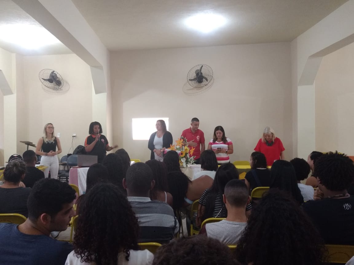 Ao final, a responsável pelo Projeto Interdisciplinar apresentou o vídeo com fotos das participações dos adolescentes no treinamento e em seguida todos foram convidados a participar de um Coffee Break.