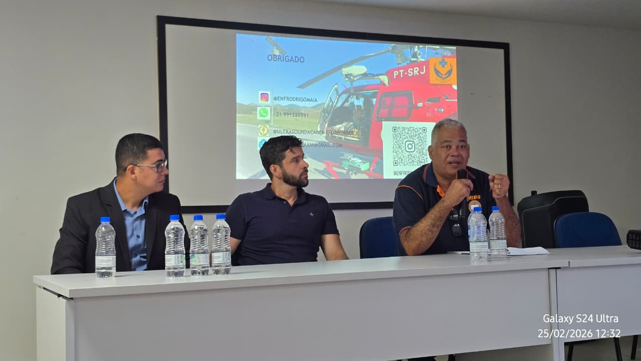 A Prefeitura de Duque de Caxias, por meio do Núcleo de Educação em Urgência (NEUR) do Serviço de Atendimento Móvel de Urgência (SAMU 192), realizou, no dia 25 de fevereiro de 2026, a aula de abertura do ano letivo com o tema: “Do pré ao intra-hospitalar no atendimento às emergências clínicas nos contextos terrestre e aeromédico”, reafirmando seu compromisso com a educação permanente e a qualificação da Rede de Urgência e Emergência.