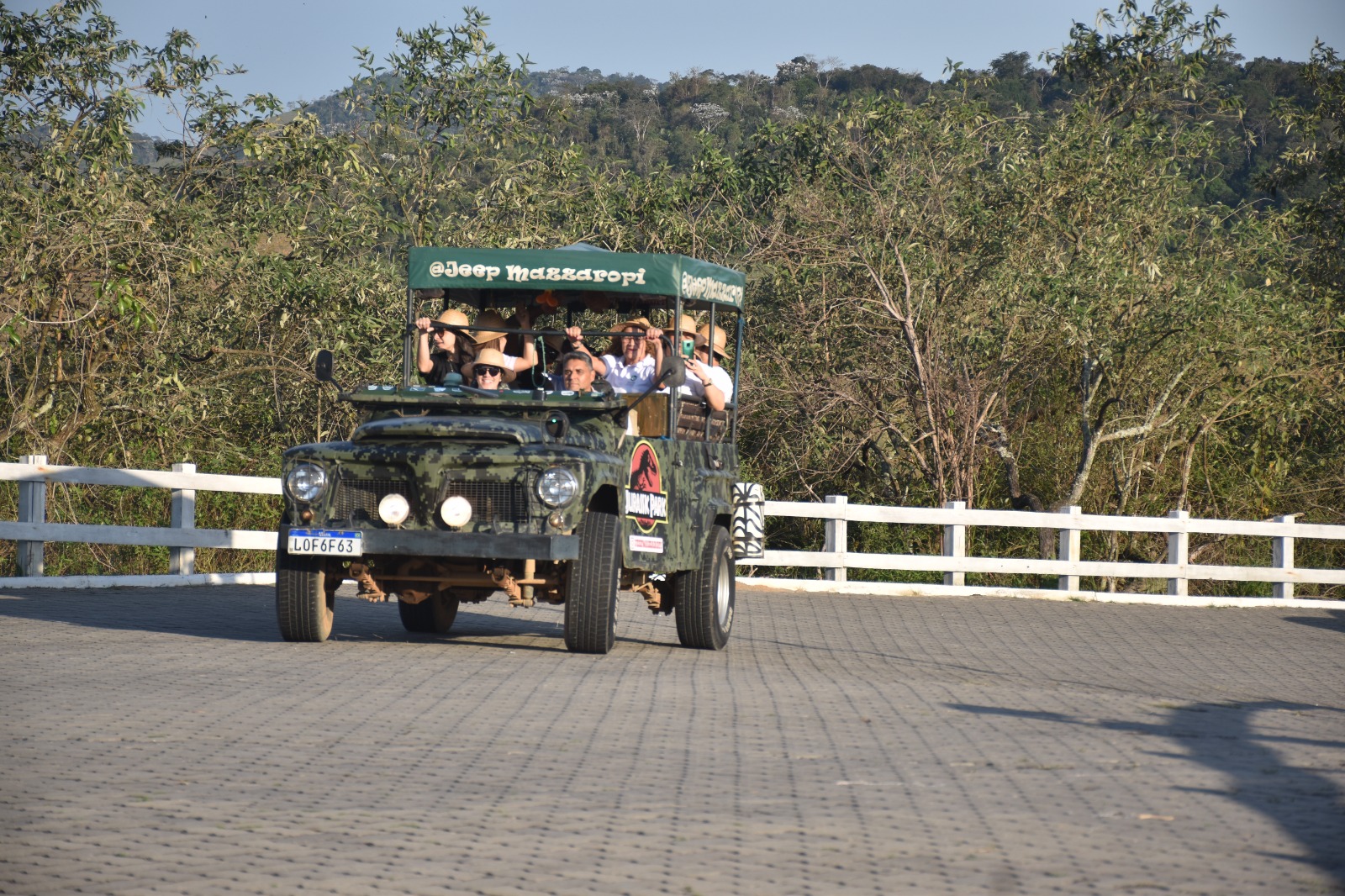 As próximas paradas foram a bordo do Jepp Mazzaropi, conduzido pelo Guia de Turismo Luís Henrique Lima, que levou parte do grupo ao mirante da Fazenda Paraíso, onde fica o monumento em forma de cruz e o Templo Ecumênico, e às instalações do Hotel Escola, em Xerém. O passeio de Jeep é considerado um dos pioneiros em turismo de aventura em Duque de Caxias.