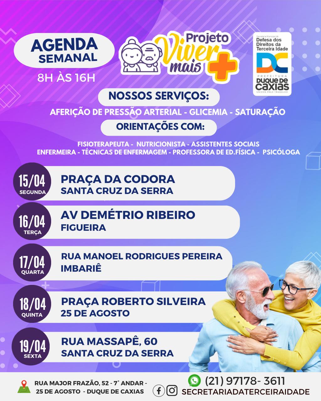 SECRETARIA DE DEFESA DOS DIREITOS DA TERCEIRA IDADE DIVULGA AGENDA SEMANAL DO PROJETO VIVER MAIS EM DUQUE DE CAXIAS