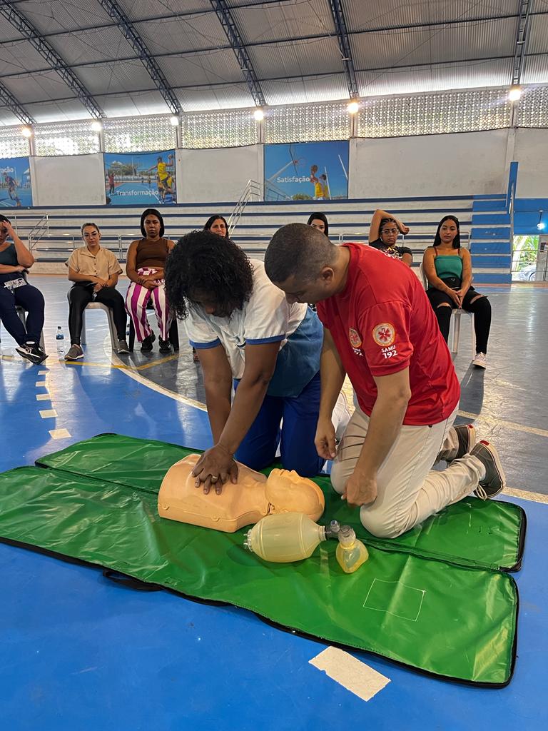 A capacitação foi ministrada pelos instrutores e Técnicos de Enfermagem, do NEUR/SAMU-DC, Adriano Valença e Carlos Henrique, além de contar com a presença do Vereador Júnior Reis.