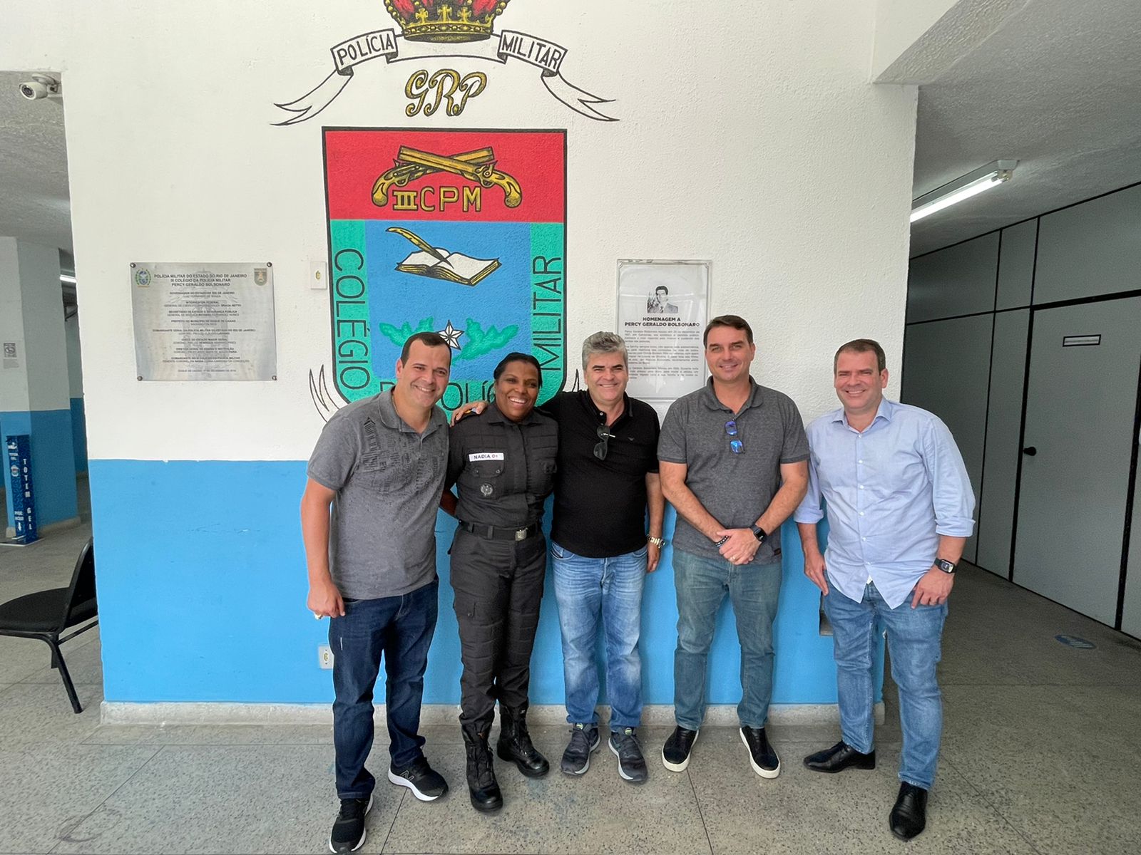 O encontro incluiu também uma visita ao lll Colégio da Polícia Militar Percy Geraldo Bolsonaro, onde foram recepcionados pela comandante do lll CPM/ERJ, Ten. Cel Nádia Luana da Conceição. A unidade escolar, que presta uma homenagem ao avô do senador Flávio Bolsonaro, completou três anos no último dia 17 de dezembro e está localizada no Jardim Gramacho, às margens da Rodovia Washington Luís.