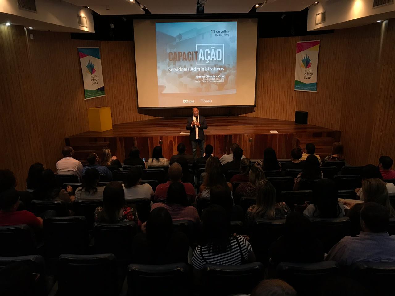 Nesta terça-feira (11/07), a Prefeitura de Duque de Caxias, através da Fundec - Fundação de Apoio à Escola Técnica, Ciência, Tecnologia, Esporte, Lazer, Cultura e Políticas Sociais, promoveu um encontro de Capacitação, no auditório do Museu Ciência e Vida, voltado para aos servidores administrativos, coordenadores de Centro Ensino e Equipe Pedagógica da Diretoria de Educação.