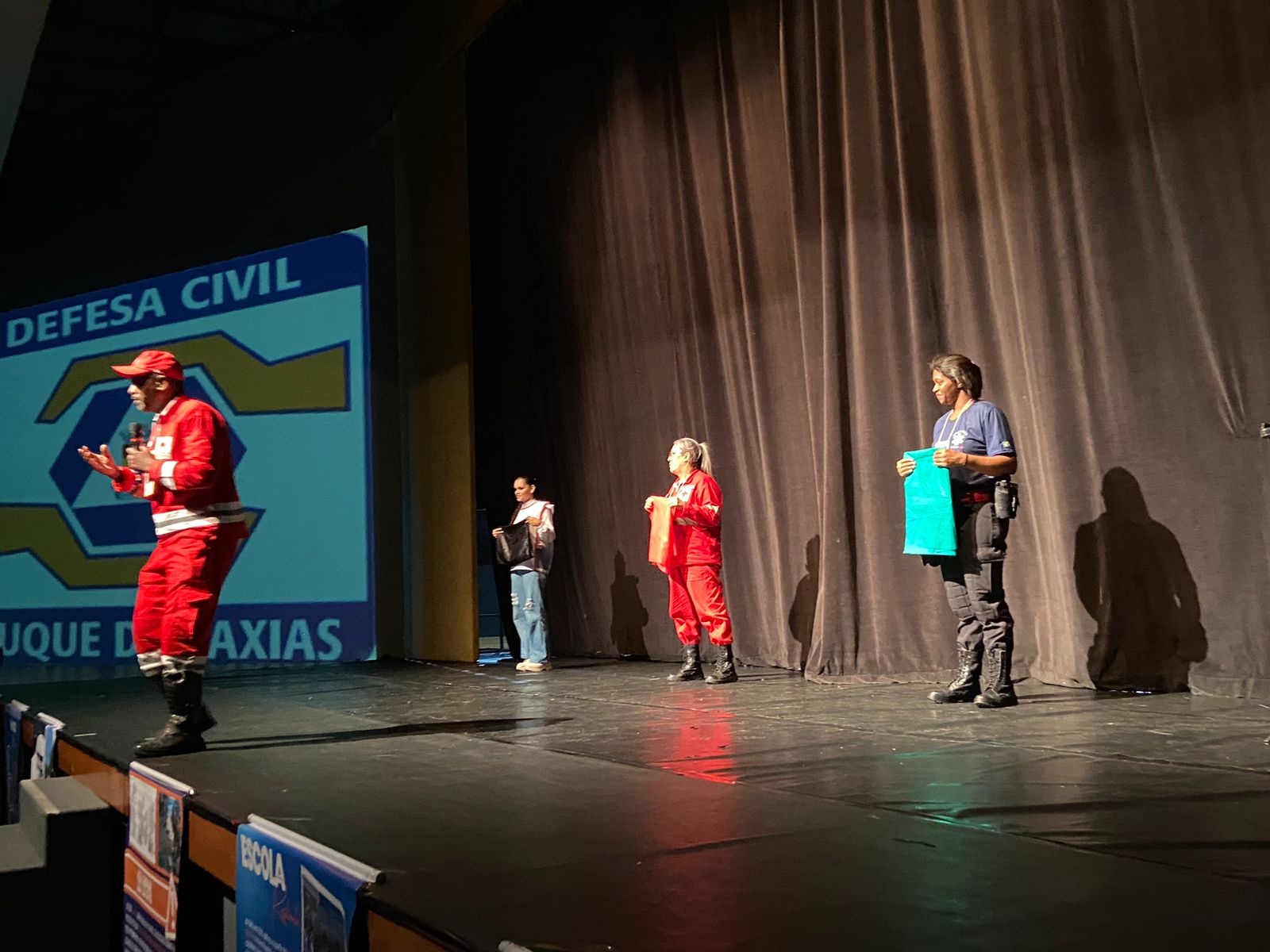 Com objetivo de discutir e aprimorar as ações de Defesa Civil no atendimento pré-hospitalar (APH) dentro do plano de contingência municipal, a Prefeitura de Duque de Caxias, através da Superintendência de Defesa Civil, promoveu, nesta quinta-feira (01/08), o 1º Simpósio de Ações de Defesa Civil em Atendimento Pré-Hospitalar (APH). O evento, realizado no Teatro Raul Cortez, contou com a presença do prefeito Wilson Reis, do superintendente de Defesa Civil André Xavier, e reuniu um grande número de pessoas, entre moradores, agentes de defesa civil e voluntários.