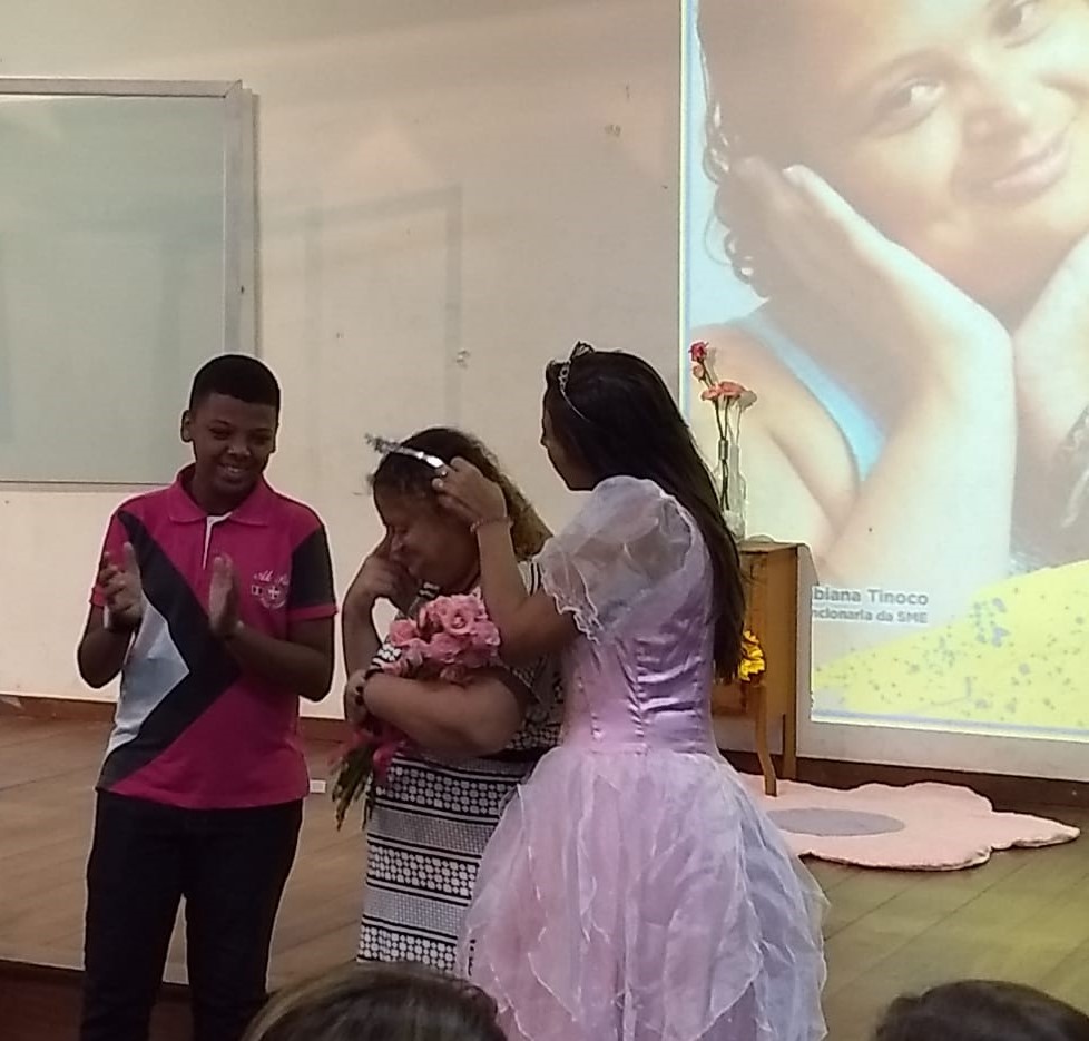 A SME aproveitou o momento e celebrou também o Dia Internacional da Síndrome de Down ao exibir um vídeo sobre a importância da inclusão e o trabalho que tem sido implementado na rede com os alunos especiais. Na ocasião, o destaque foi para Fabiana Tinoco, que tem Síndrome de Down e é funcionária da SME. Fabiana foi aplaudida pelo público presente e coroada a princesa da tarde.