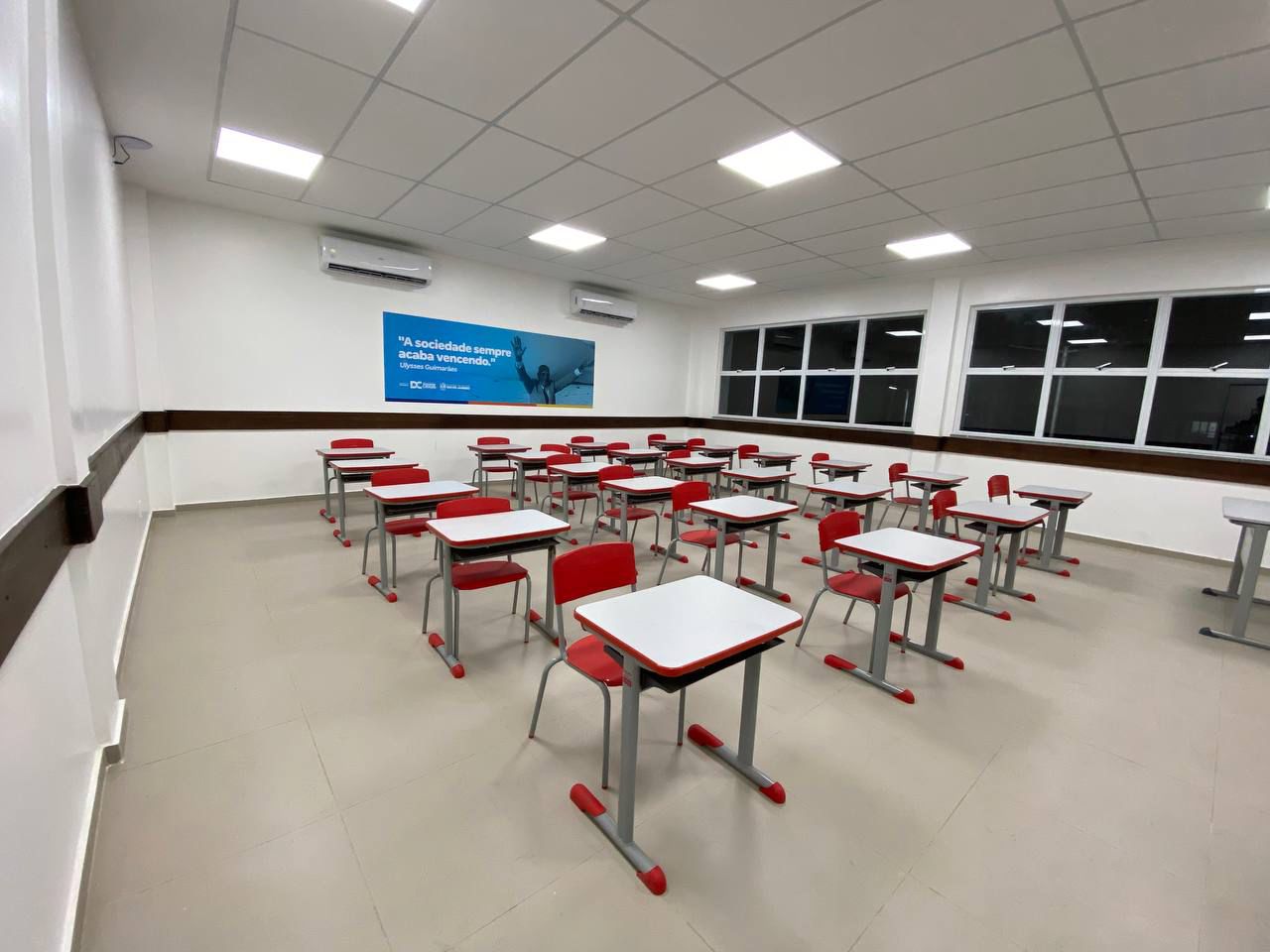A nova unidade escolar ocupa uma área de 4.550 m², conta com 12 salas de aula multiuso, auditório, pátio coberto, salas de leitura e de informática, área de lazer e convivência, quadra poliesportiva, entre outras dependências, distribuídas em dois pavimentos, para atender alunos e profissionais de educação.
