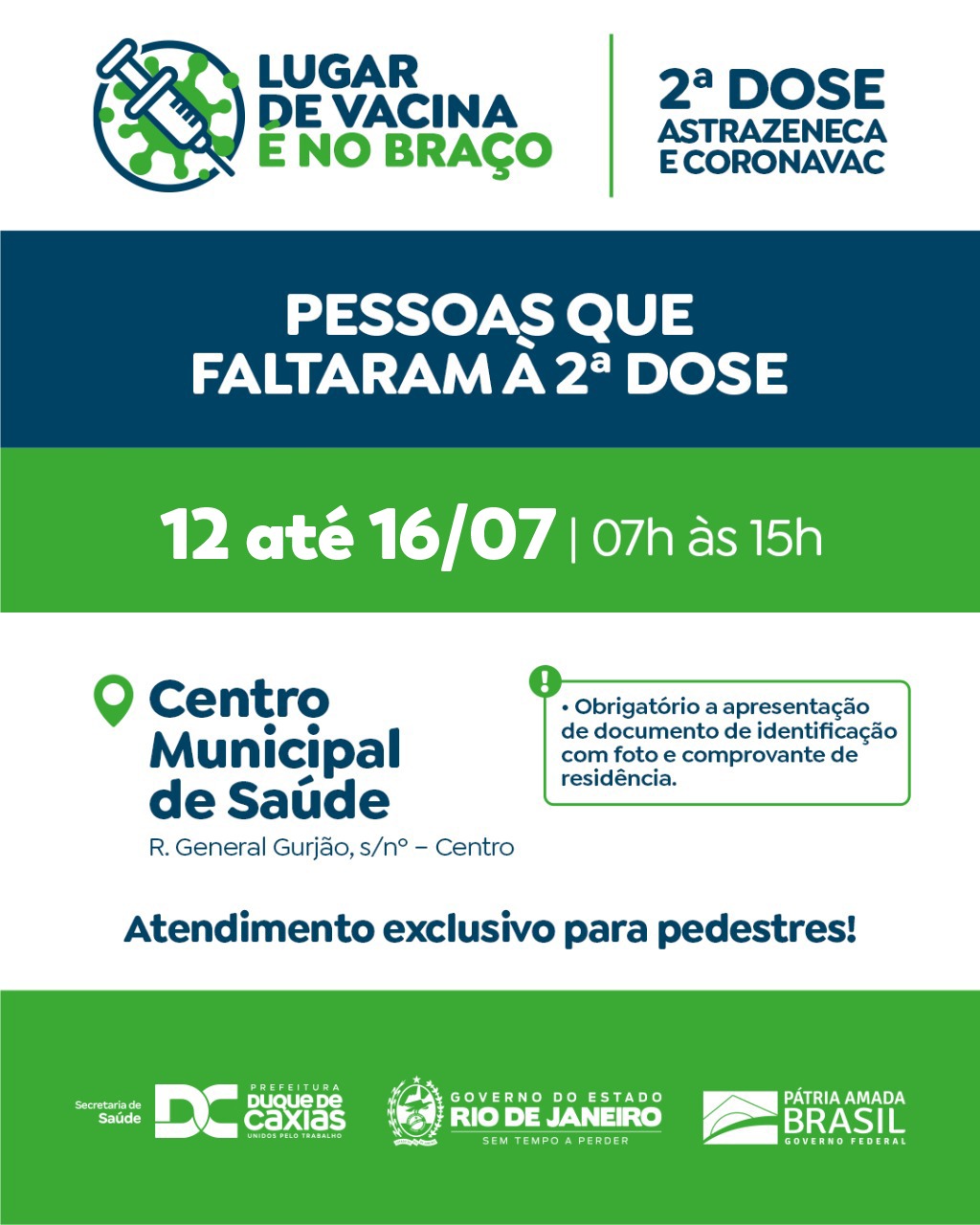 - Segunda Dose para Faltosos (Astrazeneca e Coronavac):