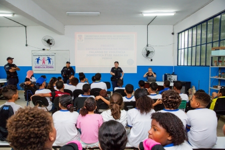 Na manhã desta terça-feira (23), a Patrulha Maria da Penha (PMP) esteve na Escola Municipal Olga Teixeira, no Parque Lafaiete, no Primeiro Distrito, para mais uma ação educativa voltada aos alunos da rede pública..