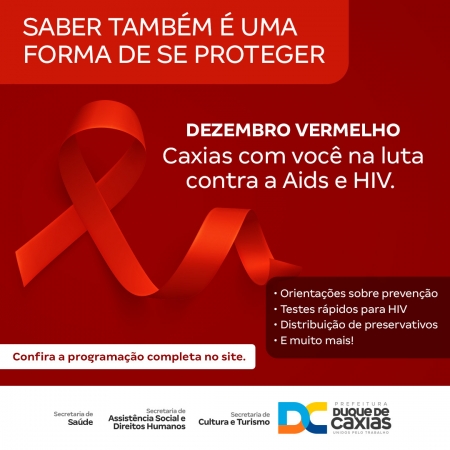 A Prefeitura de Duque de Caxias, através da Secretaria Municipal de Saúde, está mobilizando agentes de saúde do município em torno de ações que marcam o Dezembro Vermelho no município. A campanha instituída pela Lei Municipal nº 2.765/2016 e reforçada pela Lei Federal nº 13.504/2017, marca uma grande mobilização nacional na luta contra o vírus HIV, a Aids e outras IST (infecções sexualmente transmissíveis), chamando a atenção para a prevenção, a assistência e a proteção dos direitos das pessoas infectadas com o HIV..