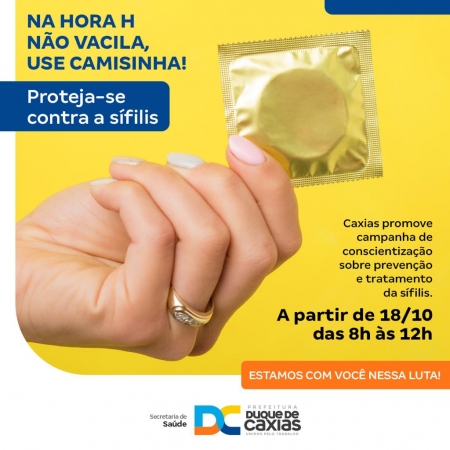 A Prefeitura de Duque de Caxias, através da Secretaria de Saúde, por meio do Programa Municipal de IST/AIDS e Hepatites Virais, realiza campanha de conscientização com o objetivo de enfatizar a importância do diagnóstico e do tratamento adequado da sífilis como infecção sexualmente transmissível, especialmente em gestantes durante o pré-natal, promovendo ações educativas, além de oferecer testes rápidos de sífilis diariamente para a população em várias unidades de saúde da cidade..