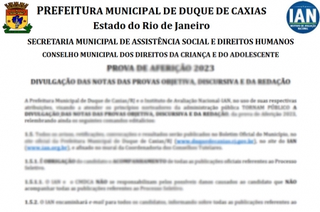 A Secretaria de Assistência Social e Direitos Humanos de Duque de Caxias, através do Conselho Municipal dos Direitos da Criança e do Adolescente, divulgou o resultado das provas objetivas, discursivas e da redação referentes ao processo para escolha dos conselheiros tutelares de Duque de Caxias, nesta quinta-feira (17). De acordo com edital, o prazo para recurso da prova discursiva e a redação começa hoje e vai até o dia 21/08..