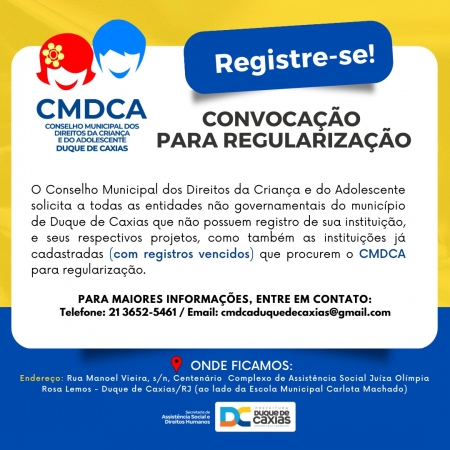 CONSELHO MUNICIPAL DOS DIREITOS DA CRIANÇA E DO ADOLESCENTE DE DUQUE DE CAXIAS CONVOCA PARA NORMALIZAÇÃO DE REGISTRO