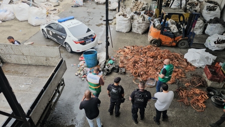 Durante operação integrada entre a Secretaria Municipal de Meio Ambiente com a Delegacia de Roubos e Furtos, 10 toneladas de cobre foram apreendidas em um único ferro-velho que foi considerado o maior receptador de cobre da Baixada Fluminense..