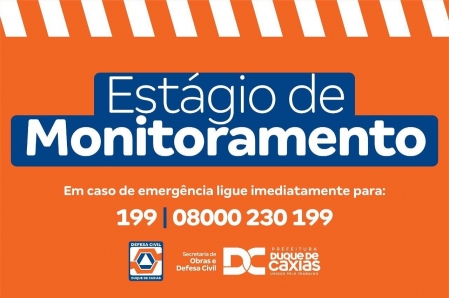 A Prefeitura de Duque de Caxias, através da Defesa Civil Municipal, informa que o município se encontra em estágio de monitoramento. Não há previsão de chuvas fortes para as próximas horas na Baixada Fluminense neste domingo (03:04). .