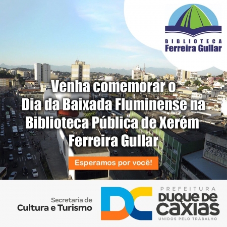 Para marcar o Dia da Baixada Fluminense, comemorado em 30 de abril, a Secretaria de Cultura e Turismo de Duque de Caxias promove, nesta sexta-feira (29), na Biblioteca Pública de Xerém Ferreira Gullar, manhã cultural com palestras e exposições sobre a Baixada Fluminense..