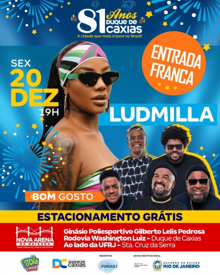 A cidade de Duque de Caxias, na Baixada Fluminense, está prestes a completar 81 anos de fundação e a comemoração promete ser inesquecível. A prefeitura está organizando, em parceria com a FUNARJ e o Governo do Estado, uma série de eventos gratuitos para marcar a data, com grandes nomes da música brasileira. O primeiro dia de festividades será aberto com o show da cantora Ludmilla. .