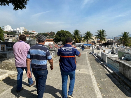A Prefeitura de Duque de Caxias iniciou a encampação dos dois principais cemitérios da cidade nesta quarta-feira, 13. Ou seja, a partir de agora, a administração do cemitério Nossa Senhora das Graças (Tanque do Anil) e o cemitério Nossa Senhora do Belém (Corte Oito) passa a ser do município. Uma força-tarefa, formada pelas secretarias de Governo, Transportes e Serviços Públicos, Urbanismo e Habitação, esteve nesta manhã para avaliar as condições dos espaços. .