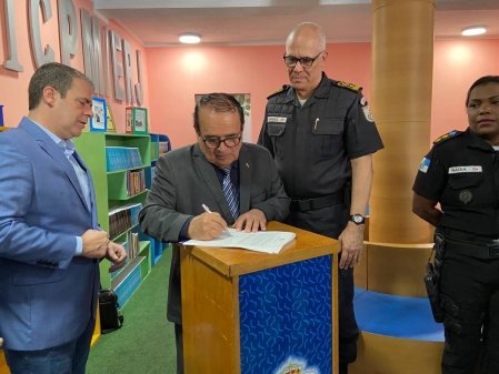 O lll Colégio da Polícia Militar realizou, nesta sexta-feira (15/03), a solenidade de assinatura do Termo de Convênio entre a Secretaria de Estado de Polícia militar, a Prefeitura Municipal de Duque de Caxias e a Fundec. O evento aconteceu na instituição de ensino, situada no bairro Jardim Gramacho, e contou com a presença do prefeito de Duque de Caxias, Wilson Reis; do deputado estadual Rosenverg Reis; do presidente da Fundec, Jonas Santana, e do secretário de Polícia Militar do Estado do Rio de Janeiro, Cel PM Luís Henrique Marinho Pires. .