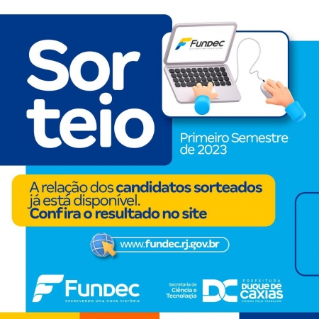 A Prefeitura de Duque de Caxias, através da Fundação de Apoio à Escola Técnica, Ciência, Tecnologia, Esporte, Lazer, Cultura e Políticas Sociais (Fundec), informa que já está disponível o resultado do sorteio para os cursos gratuitos do primeiro semestre de 2023. .