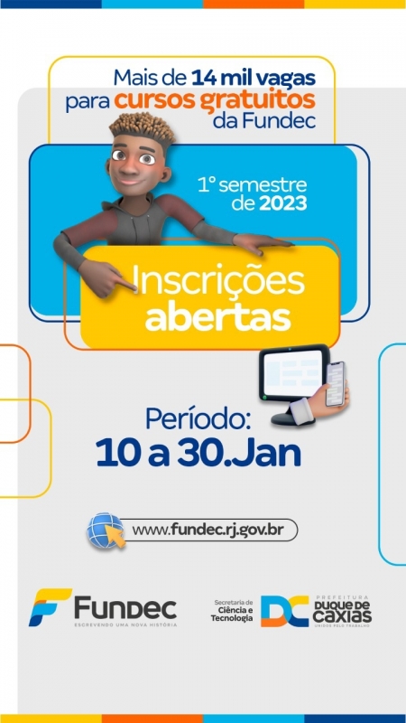 Na ultima terça-feira (10), a Prefeitura de Duque de Caxias, através da Secretaria Municipal de Ciência e Tecnologia, abriu o período de inscrições, com 14 mil vagas disponíveis em cursos presenciais e gratuitos nos 26 centros de ensino, distribuídos pelos quatro distritos da cidade..