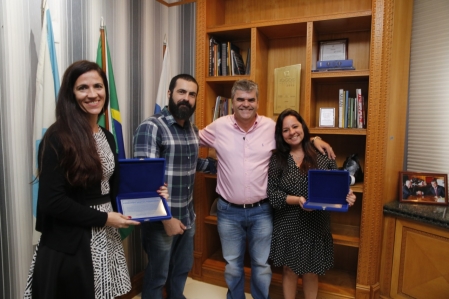 O prefeito Washington Reis entregou hoje, 29/10, no Gabinete da PMDC, a moção de congratulação à delegada titular da DEAM Duque de Caxias, Fernanda Santos Fernandes, e à inspetora chefe, Tatiana Pinotti Evangelista. .