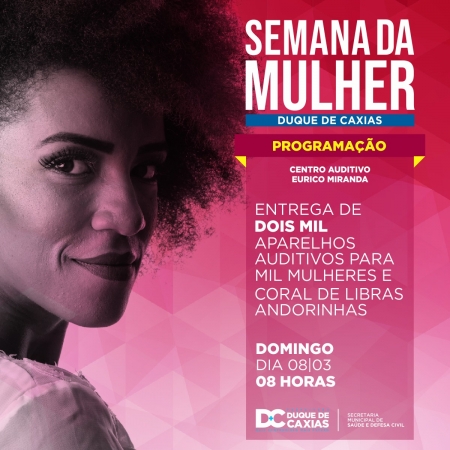 Para comemorar o Dia Internacional da Mulher, a Prefeitura de Duque de Caxias, através da Secretaria Municipal de Saúde e Defesa Civil, realizará a entrega de dois mil aparelhos auditivos, beneficiando mil mulheres atendidas pelo Centro de Saúde Auditiva Eurico Miranda. A entrega acontecerá no próximo domingo, 08/03, a partir das 8 horas. .