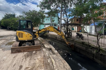 Nesta segunda-feira (25/03), a Prefeitura de Duque de Caxias, através da Secretaria Municipal de Obras e Defesa Civil, está nas ruas com equipe redobrada, realizando limpeza e desassoreamento de rios e bueiros da cidade, com o objetivo de reduzir os impactos das últimas chuvas que atingiram o município. As equipes já trabalharam no rio Saracuruna e Congo Choco; canal Cintura, no Pilar; nas galerias, em Vila ideal, entre outras localidades. .
