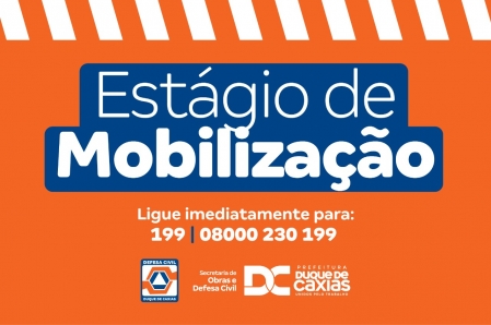 A Superintendência Municipal de Defesa Civil de Duque de Caxias informa que, devido à chegada da frente fria e das chuvas no município, que devem se prolongar nos próximos dias, a cidade entrou em Estágio de Mobilização. Até o momento, não foram registradas ocorrências. A Defesa Civil pede aos moradores que, ao notarem qualquer anormalidade, procurarem um local seguro e liguem imediatamente para os telefones 199 e 08000230199 ou para o Corpo de Bombeiros, no número 193..
