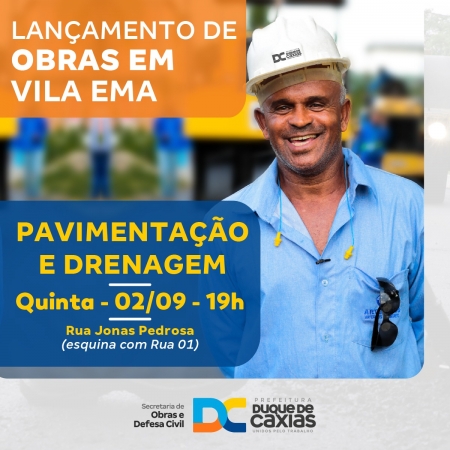 A Secretaria Municipal de Obras e Defesa Civil continua atuando no programa de melhorias dos bairros, que estão recebendo obras de drenagem e pavimentação. As obras vão mudar a qualidade de vida dos moradores e acabar com os alagamentos registrados em muitas comunidades. Nesta quinta-feira (02), às 19h, a Prefeitura de Duque de Caxias vai realizar o lançamento das obras da rede de drenagem e pavimentação asfáltica de diversas ruas de Vila Ema..