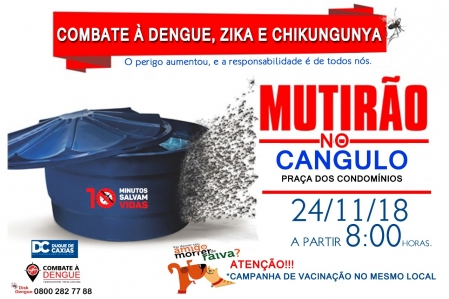 SÁBADO (24) É DIA DE MUTIRÃO COM VACINAÇÃO ANIMAL E COMBATE A DENGUE NO BAIRRO CANGULO .