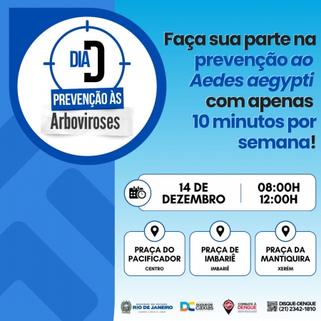 A Prefeitura de Duque de Caxias, através da Superintendência de Vigilância Ambiental, Vetores e Zoonoses (SVAVZ) da Secretaria Municipal de Saúde, promove, neste sábado (14), ações pelo Dia D de Mobilização Nacional Contra a Dengue. .