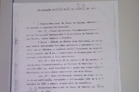 A Prefeitura de Duque de Caxias informa que na próxima segunda-feira (13/06), Dia de Santo Antônio, será feriado municipal. A data é consagrada ao Padroeiro da cidade pela Deliberação 1.543, de 16 de abril de 1970..