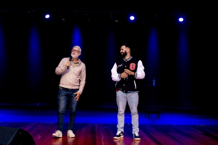 Na última sexta-feira (8), o Teatro Municipal Raul Cortez, localizado na Praça do Pacificador, no Centro de Duque de Caxias, recebeu o espetáculo “Ser Feliz - Especial Dia dos Pais”, com o pastor Claudio Duarte e Douglas Di Lima. A abertura contou com a participação do Secretário Municipal de Cultura e Turismo, Aroldo Brito, responsável por apresentar as duas atrações e por agradecer a presença do público. .