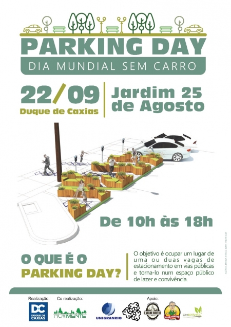 Nesta sexta-feira, dia 22 de setembro, a Prefeitura de Duque de Caxias, através das secretarias municipais de Urbanismo e Habitação e Cultura e Turismo, promoverá o evento Park(ing) Day Duque de Caxias para celebrar o Dia Mundial Sem Carro..