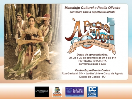 A Prefeitura de Duque de Caxias, através da Secretaria Municipal de Educação, apresenta o espetáculo infantil A procura da Água, uma produção da Mamalujo Cultural com apoio da atriz Paolla de Oliveira. As apresentações acontecem no Centro Esportivo Municipal (Vila Olímpica de Caxias), dias 20, 21 e 22 de setembro, em duas sessões diárias, às 9h e às 14h. .