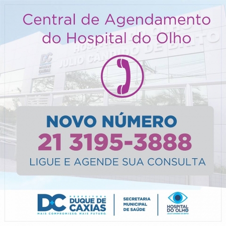 A Secretaria Municipal de Saúde de Duque de Caxias informa a população que, em função da grande procura a CENTRAL DE AGENDAMENTO DE CONSULTAS DO HOSPITAL DO OLHO, estamos colocando à disposição da população UM NOVO NÚMERO DE ACESSO..