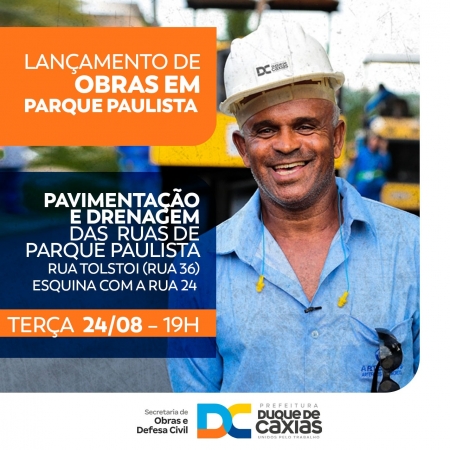 Um bairro de cara nova. A Prefeitura de Duque de Caxias, por meio da Secretaria Municipal de Obras e Defesa Civil, lançou, na noite desta terça-feira (24/08), o conjunto de obras de drenagem e pavimentação no bairro Parque Paulista, no terceiro distrito. Serão mais de 12 km de ruas pavimentadas, beneficiando moradores de 41 ruas da região, que também vão ganhar iluminação em LED, através do programa “Caxias Cidade Luz”..
