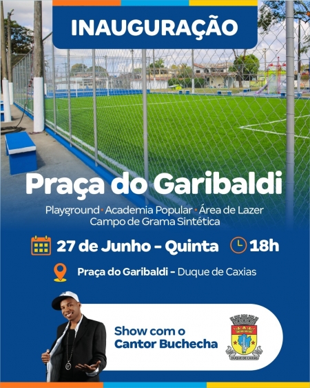 Mais um espaço público de lazer reformado pela Prefeitura de Duque de Caxias, no segundo distrito, será entregue nesta quinta-feira (27/06), às 18h, pelo prefeito Wilson Reis e pelo secretário municipal de Obras e Defesa Civil, Valber Januário. A Praça do Garibaldi, localizada no Parque Fluminense, conta com playground, academia de ginástica e campo de futebol, que recebeu nova grama sintética. O sistema de iluminação de led da área também foi atualizado. A noite será animada pelo cantor Buchecha que, junto com os moradores da localidade, vai relembrar seus sucessos..