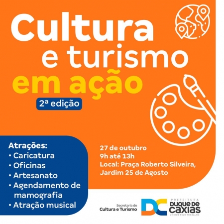 As atividades promovidas pela Prefeitura de Duque de Caxias, em alusão a Campanha Outubro Rosa, seguem no município no decorrer desta semana. Nesta quarta-feira (27/10), a Secretaria Municipal de Cultura e Turismo realiza a segunda edição do “Cultura e Turismo em Ação”, tendo como tema a prevenção ao câncer de mama. O evento acontece, das 9h às 13h, na Praça Roberto Silveira, Vinte e Cinco de Agosto..