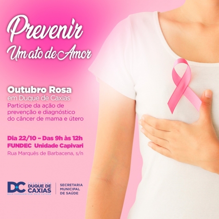 A Prefeitura de Duque de Caxias, através da Fundec (Fundação de Apoio à Escola Técnica, Ciência, Tecnologia, Esporte, Lazer, Cultura e Políticas Sociais), realizou na terça-feira (16), atividades para conscientização sobre a prevenção ao câncer de mama. A Fundação promoveu na unidade Inclusão e Trabalho, no centro de Duque de Caxias, atividades de beleza, descontração e esportivas, abrindo também a Semana Integrada. As atividades relacionadas ao Outubro Rosa têm o objetivo de conscientizar e direcionar as alunas e funcionárias das unidades. Na ocasião também foi realizada ação de embelezamento nas mulheres, trabalhando a autoestima feminina. .