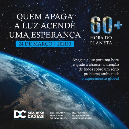 A Prefeitura de Duque de Caxias, através da Secretaria Municipal de Governo, apoiará o movimento mundial “A Hora do Planeta 2018”. Esta ação possibilita a reflexão sobre a adoção de medidas de economia das energias renováveis..